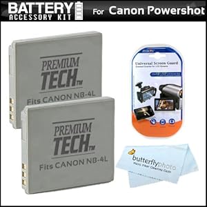 2 Pack Battery Kit For Canon Powershot ELPH 310 HS ELPH 100 ELPH 300 SD960 IS SD940 IS SD780 IS SD1400 IS Digital Camera Includes 2 Extended Replacement (900 maH) NB-4L Battery + LCD Screen Protectors + MicroFiber Cleaning Cloth