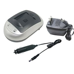 Kit includes battery charger with custom battery plate, AC (home/office) and DC (car) power adapters.