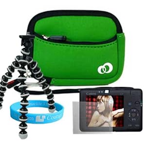 Green Mini Glove Carrying Case for Canon Powershot A495 A490 SD 1300 IS SD1200 IS SD780 IS S90 + Tripod + Screen Protector + Wisdom * Courage Wristband