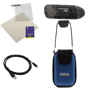 GTMax 4pcs USB 5-Pin Data Cable+Blue/Black Eva Pouch Case+SD Memory Card Reader+LCD Screen Protector for Canon PowerShot S95,SD1300 IS,SD1200 IS,SD1400 IS,SD750,SD780 IS,300 HS,100 HS,A495,A3300 IS,A2200,500 HS